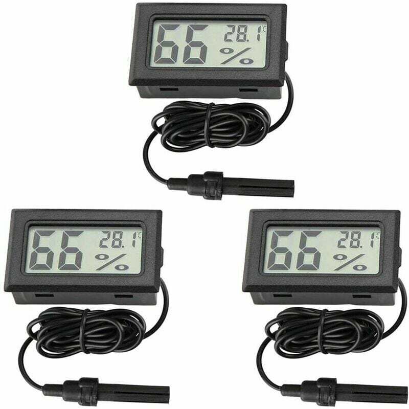 Mini termometro LCD digitale Il termoigrometro è molto popolare e ampiamente utilizzato in soggiorno, serra, sala strumenti musicali, cantina, cantina, magazzino, soffitta, vivaio, stanza del fango. Batteria: due pile a bottone LR44, dimensioni: 48 x 28,6 x 15,2 mm. Termoigrometro piccolo e portatile adatto a vari scenari. Inoltre, il suo aspetto bello ed elegante è anche una bella decorazione per la stanza. Intervallo di umidità misurabile: da 10% a 99%, precisione di misurazione dell'umidità: da ±5% a 10% (25° a temperatura ambiente). Affidabilità, misurata ogni 10 secondi, che fornisce le letture più recenti e accurate. Intervallo di temperatura misurabile: -50? ~+70°, precisione della misurazione della temperatura: ±1,0°. È possibile controllare l'attuale clima interno e utilizzare un umidificatore per regolare la temperatura interna e l'umidità secondo necessità. Facile da leggere: con un display LCD per una migliore visibilità, puoi vedere la perdita di temperatura o umidità.