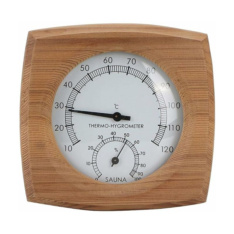 Fatto a mano, bello nell'aspetto, piccolo e raffinato, molto adatto per l'uso in sauna. Realizzato in legno di cedro di alta qualità, è resistente alle alte temperature e alla corrosione e può essere utilizzato a lungo. Il display della scala è chiaro e preciso, le prestazioni sono stabili e la temperatura e l'umidità della stanza della sauna possono essere rigorosamente controllate, offrendoti un ambiente rilassato e confortevole.Il termoigrometro 2 in 1 è uno strumento eccellente per controllare l'umidità e la temperatura nelle saune e nel vapore Il termometro mostra un intervallo di temperatura compreso tra 10°C e 120°C e un igrometro mostra un intervallo di umidità compreso tra 0% e 100%.