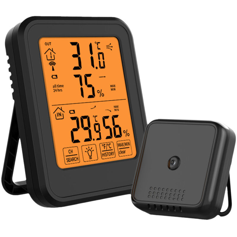 Descrizione: Il termoigrometro può misurare contemporaneamente la temperatura interna ed esterna. Si può vedere che il sensore esterno è posizionato a una distanza di 100 m/328 piedi per misurare i dati e la temperatura esterna può essere controllata sull'host interno. Caratteristiche: [Utile] Il termometro igrometro aiuta a regolare l'umidificatore, le impostazioni del deumidificatore, l'umidificatore, ecc. [Precisione] L'igrometro digitale fornisce letture aggiornate e accurate. Le misurazioni dei dati vengono aggiornate ogni 2 secondi per fornire gli ultimi cambiamenti nell'ambiente. [3 modi di installazione] L'igrometro digitale con attacco magnetico, supporto da tavolo e design con foro per appendere a parete, da mettere dove vuoi. [Facile da leggere] Il misuratore di umidità ha un pannello frontale luminoso con un display LCD chiaro, facile da leggere anche da lontano. [Ampiamente applicabile] Adatto per cucina, giardino, serra, seminterrato, baby room, stanza della chitarra e