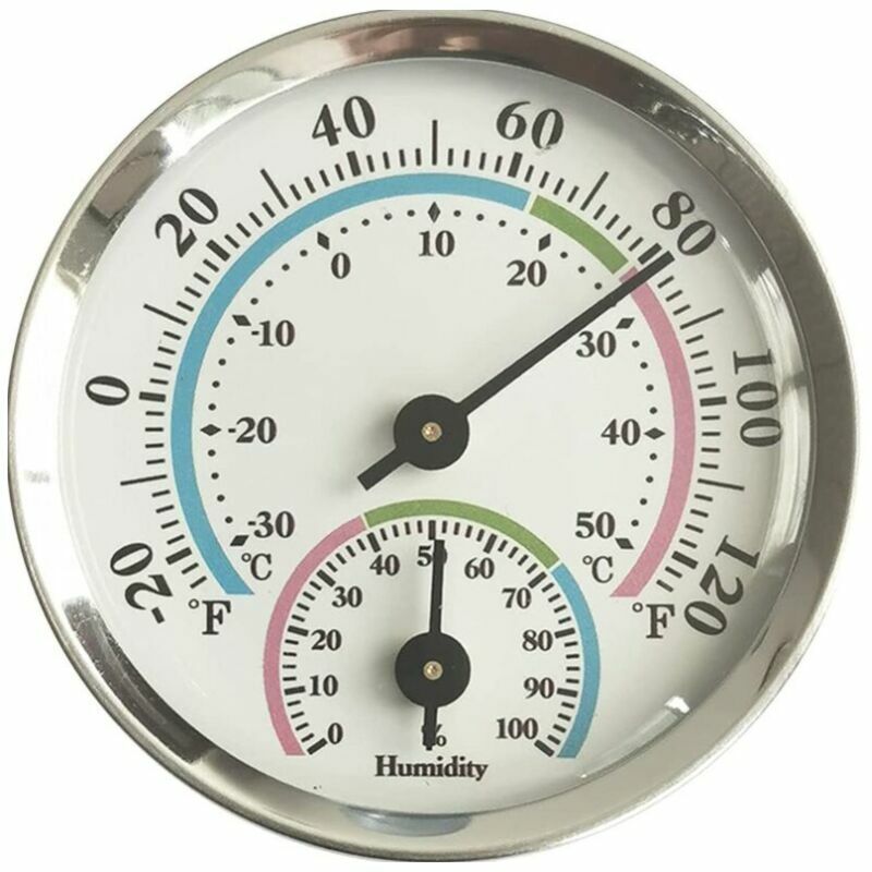 Strumenti 2 in 1 - - Il termometro e l'igrometro per interni ed esterni da 58 mm di diametro sono strumenti 2 in 1 per il monitoraggio e il controllo della temperatura e dell'umidità. [Alta qualità] - Custodia in lega di alluminio, custodia in plastica, lente in plastica, quadrante in PVC. La scala sul quadrante è chiaramente visibile, resistente alle alte temperature e di facile lettura. Si prega di fissarlo nello stesso posto per garantire l'accuratezza della misurazione. [Sensibile e accurato]- Intervallo di misurazione della temperatura da -30 ℃ a +50 ℃, precisione di 1 ℃Intervallo di misurazione dell'umidità da 0% a 100%, il colore confortevole della temperatura e dell'umidità indica lo stato dell'aria condizionata interna. [Foro per appendere] - Il termometro igrometro è adatto per essere appeso, con il foro per appendere sul retro, puoi appenderlo facilmente sul muro. [Ampia applicazione] - Perfetto per monitorare temperatura e umidità.39;