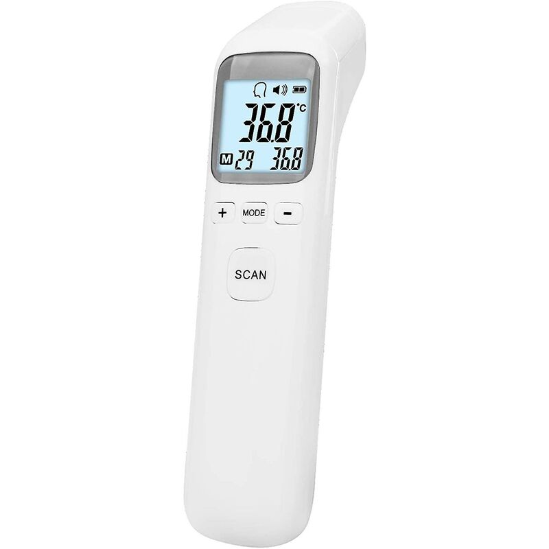 TERMOMETRO A INFRAROSSI SENZA CONTATTO La distanza tra il termometro e la fronte dovrebbe essere di 1-5 cm. È sicuro e igienico. Sensore a infrarossi avanzato integrato, assicurati di misurare la temperatura in modo rapido e preciso. MULTIFUNZIONE Ha la fronte modalità modalità stanza e modalità muto.Supporta la misurazione BodyRoomObject.Con la modalità muto il termometro potrebbe misurare silenziosamente la temperatura del bambino. Allarme di errore di modalità, se si utilizza la modalità stanza per misurare il corpo, verrà emesso un allarme.32 SET DI MEMORIA PROMEMORIA Memorizza le 32 misurazioni delle variazioni della temperatura corporea. Puoi monitorare facilmente la temperatura e la salute. E memorizzare 32 misurazioni della temperatura ambiente, Salva ogni tempo della stanza/trazione dell'oggetto. COMMUTARE FACILMENTE FUNZIONAMENTO Premere il pulsante SCAN Inizia a funzionare. Si spegne automaticamente dopo che non funziona. Premere a lungo il pulsante Modalità su F1, premere