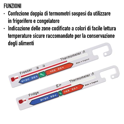 Set di termometri verticali per frigorifero/freezer con zone di temperatura sicure a colori, 2 pezzi