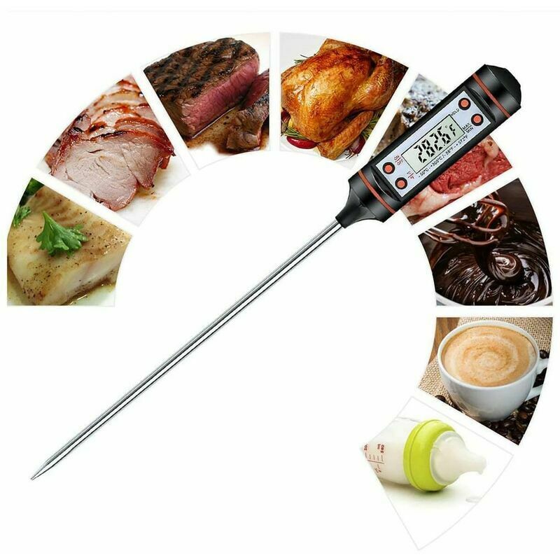 Specifiche: - Tipo: termometro da cucina digitale - Materiale: acciaio inossidabile, plastica. - Colore: nero - Intervallo di misurazione: -50°C - +300 °C (-58°F - +572°F) - Alimentazione: 1 batteria a bottone LR44 / AG13 (già inclusa) - Lunghezza del termometro: 17,5 cm. - Controllo tasti: ON/OFF, °C/°F, MAX/MIN e HOLD Contenuto della confezione: - 1 termometro digitale da cucina - 1 batteria a bottone - 1 manuale utente Descrizioni: Risposta istantanea: il termometro digitale per carne con display LCD Questo il termometro da cucina mostra risultati accurati della temperatura in circa 5 secondi. Spegnimento automatico: spegnimento automatico dopo 10 minuti di non utilizzo. Ciò consente di risparmiare molta energia e prolunga la durata del termometro (batteria inclusa). AMPIA GAMMA DI TEMPERATURA: L'intervallo di misurazione del nostro termometro da cucina da -50°C a 300°C rende questi utensili lo strumento migliore per grigliare dolci sulla griglia a gas o sulla friggitrice per