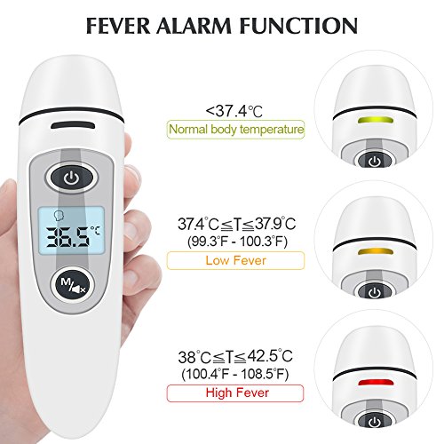 QUICK E FACILE: con soli 2 pulsanti, questo termometro per bambini è molto facile da usare. Il termometro si legge entro 1 secondo e un segnale acustico abbastanza alto ti avviserà che è stato fatto. Anche la funzione muta è disponibile, non sveglia il bambino e non spaventerà i bambini.