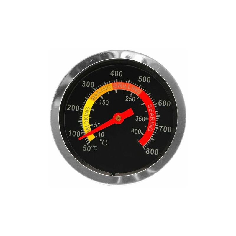 È realizzato in acciaio inossidabile ed è molto facile da pulire. installa, perché devi solo inserire l'asta in attraverso il foro sul tuo focolare/affumicatore/grill e poi attacca il dado che è incluso. Misura con precisione la temperatura a l'interno del barbecue C'è una sezione filettata nella parte inferiore della griglia. la parte posteriore del termometro (44 mm di lunghezza che accetta un dado ad alette da 32 mm (incluso). Questo termometro va da 100 °C a 100°C. 426,7°C in temperatura di cottura Diametro del quadrante del termometro: 60 mm. Lunghezza totale: 80 mm