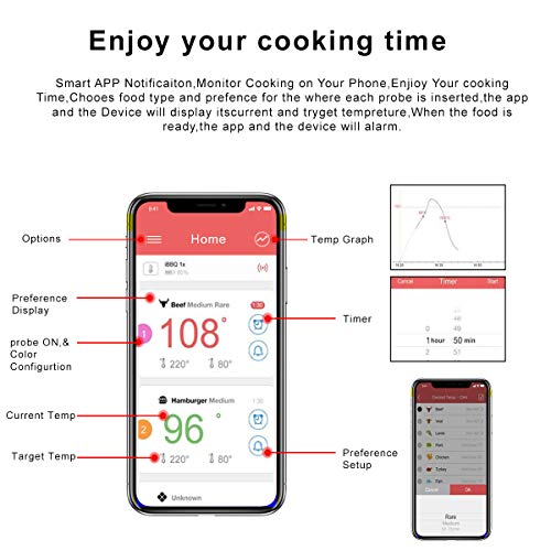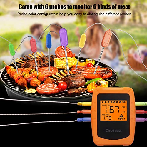 Termometro per Barbecue Wireless, Cadrim Termometro per Barbecue Bluetooth Wireless con 6 Sonde, Schermo LCD con Design Magnetico, Supporta iOS, Android, per Forno, Barbecue, Cibo,Carne, Acqua Ecc