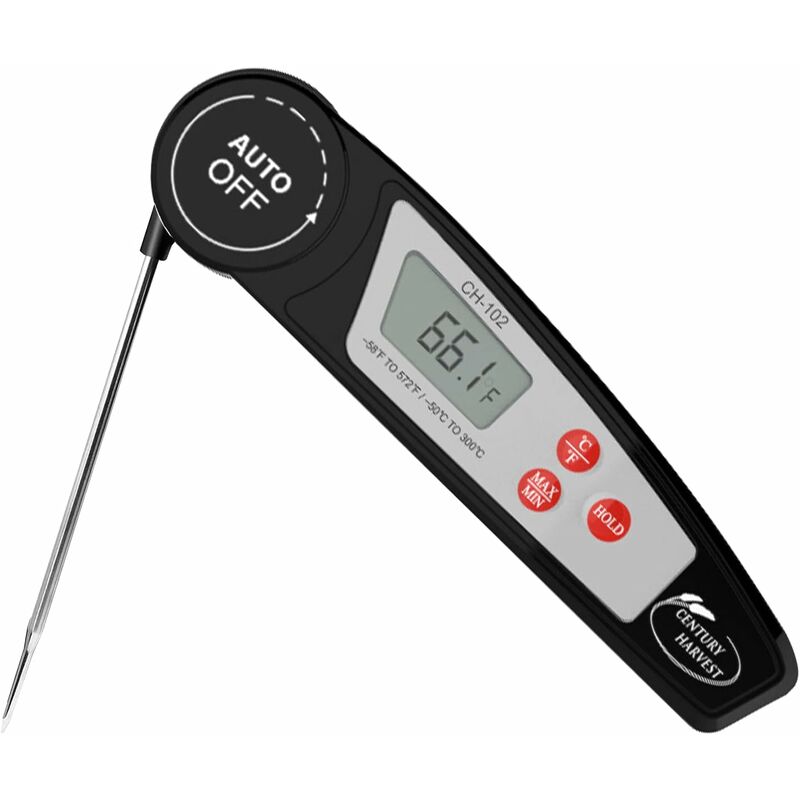 Veloce e preciso - Il termometro per carne Tihokile impiega solo 2-3 secondi per leggere accuratamente in un ampio intervallo da -50°C a 300°C (da -58°F a 572°F) e la precisione è ± 1 °C. è molto adatto per bistecche, pane, marmellata, cioccolato, barbecue, latte caldo. 【Sicuro e durevole】 Il termometro da cucina è realizzato in acciaio inossidabile 304 di alta qualità e ha la certificazione per il contatto con gli alimenti. Sonda per alimenti ultrasottile e sensibile, la sua lunghezza può penetrare in profondità nel centro del pane senza bruciare la pelle. 【Facile da usare】 L'operazione è semplice. Basta accendere la sonda, inserirla nella carne durante la cottura. il termometro da cucina può leggere la temperatura in 3-4 secondi. Premi il pulsante eHOLDe per memorizzare il numero. 【Design intelligente】Se non in uso, si spegnerà automaticamente entro 10 minuti per risparmiare energia e mantenere la batteria funzionante. 【IP55 impermeabile】 Dopo averlo utilizzato, puoi lavarlo sotto