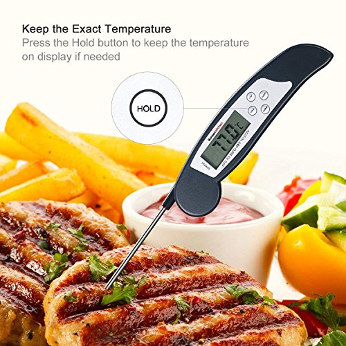 Termometro Cucina Digitale Bonsenkitchen, Termometro da Carne a lettura istantanea per grigliate, barbecue e bevande liquide riscaldate, ampio display LCD digitale, nero (ST8731)