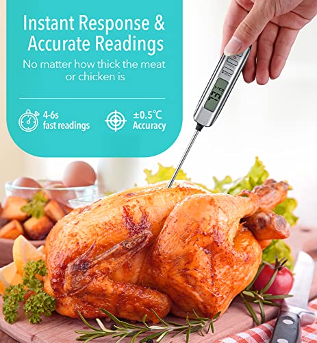Termometro Cucina Digitale, Termometro Carne con Retroilluminazione LCD, Display a Rotazione Automatica, 12cm Sonda, Termometro per Barbecue a Lettura Istantanea, per Alimenti Olio Frittura(D'argento)