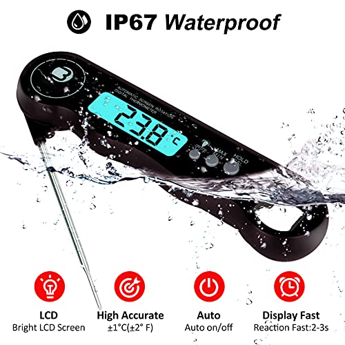Termometro Cucina Digitale, IPX6 lettura istantanea Cibo termometro Impermeabile con LCD Calibrazione e Retroilluminazione, termometro digitale per alimenti con apribottiglie