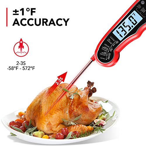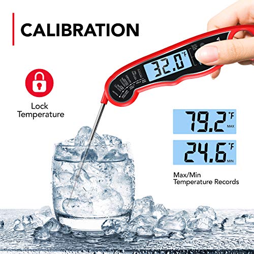 Termometro Cucina, Lettura Istantanea LCD Termometro da Cucina, Termometro Barbecue con Sonda Lunga & IP67 Impermeabile & Magnete per Cottura Alimenti Latte Dolci Olio Liquidi Cibo Barbecue (Rosso)