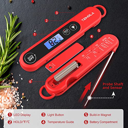Termometro Cucina, Lettura Istantanea Termometro da Cucina Digitale con Sonda Lunga & Display LCD Controluce & IP66 Impermeabile, Termometro da Forno per Carne Barbecue Latte Olio Forno (Rosso)