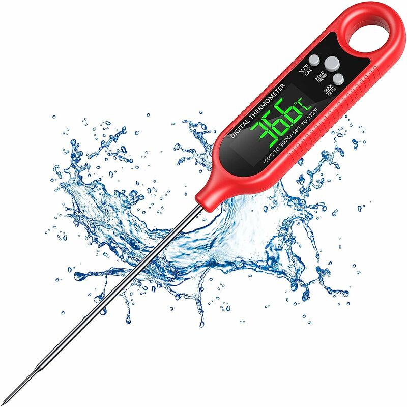 spirale o un arrosto di manzo stagionato. La sonda lunga 11,4 cm può perforare facilmente carni spesse e profonde per fornire un'accurata temperatura interna dei pasti, senza dover cucinare. preoccuparsi che la carne sia troppo o poco cotta, il che garantisce che i pasti possano essere consumati in sicurezza. Rapido e preciso: le caratteristiche principali sono la velocità e la precisione: La lettura istantanea fornisce la temperatura in soli 3 secondi ed è precisa entro 3 secondi. 2 ℉ ca. Può resistere a temperature da -58 ℉ a 100 ℉. 572°℉. Facile da ricalibrare. a casa con acqua e ghiaccio, pronti per partire. utilizzare subito fuori dalla scatola. Con questo prezioso strumento, cucinare come un professionista diventerà un gioco da ragazzi! Ampia gamma di funzioni utili: sono presenti tutte le classiche funzionalità di fascia alta: il pulsante