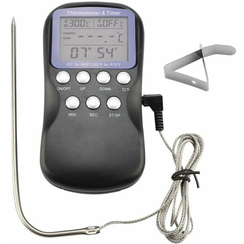 MATERIALE PREMIUM - :Realizzato in ABS e acciaio inossidabile di alta qualità, questo termometro per barbecue è durevole, impermeabile, resistente al calore e sicuro da usare, garantendoti un servizio a vita < p>【AMPIO SCHERMO LCD】 :L'ampio schermo LCD visualizza sia la temperatura che le temperature impostate di allarme per una lettura facile e chiara. Molto adatto per sfogliare rapidamente il fumo o l'avanzamento del timer di cottura 【DESIGN DELLA SONDA】 : La sonda viene fornita con un filo intrecciato in acciaio inossidabile resistente al forno, che fornisce una visualizzazione accurata della temperatura. Con il misuratore del termometro, puoi misurare facilmente la temperatura del cibo 【FUNZIONAMENTO FACILE】 : Questo termometro con sonda per alimenti è facile da usare, basta inserire la sonda nella carne e attendere l'allarme. Il dispositivo avviserà quando la temperatura target rientra nell'intervallo senza dover aprire la porta del forno 【AMPIA APPLICAZIONE】 : Con la funzione di