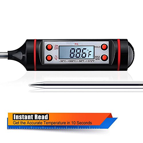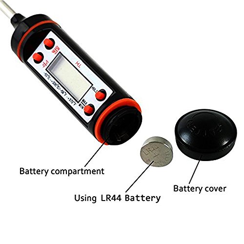 la lunghezza generosa (in totale circa 24cm) impedisce di scottarsi le mani durante la misurazione, è a prova di schizzi. Ampio range di temperature: Sono disponibili misurazioni sia in Celsius sia in Fahrneheit. Il range è -58-572 °F (-50-300°C)