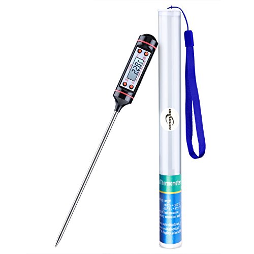 Termometro digitale da Cucina, Schermo LCD, Auto-Spegnimento, Lunghezza sonda 5,9", anti corrosione, adatto per carne,barbecue,latte e per misurare la temperatura dell'acqua e dei liquidi in genere.