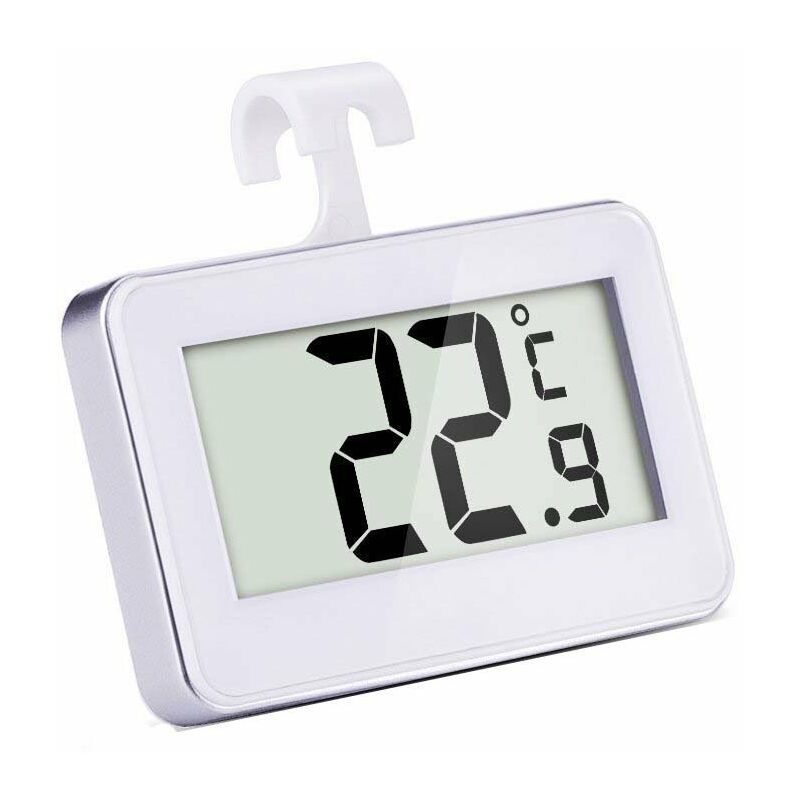 Facile da leggere: cifre grandi sullo schermo LCD da 2,1*0,6 pollici Interruttore di accensione/spegnimento che potrebbe prolungare la durata (batteria inclusa) Per applicazione congelatore e termometro interno con l'unità di Celsius o Fahrenheit opzionale a tuo favore Design elegante con comodi posizionamenti con un gancio che può essere attorcigliato Ricorda il marchio: mostra il motivo della neve mentre è 4 ℃ a 7,9 ℃ ambiente