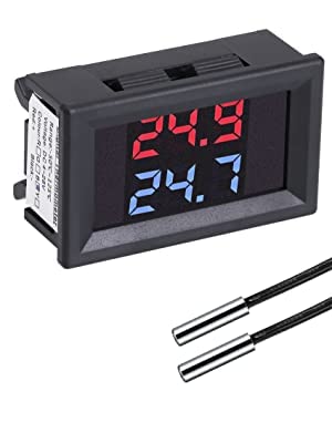 Doppio sensore impermeabile: il modulo sensore di temperatura con 2 sonde NTC, consentendo al termometro di misurare le temperature in due luoghi diversi. Ad esempio, la misurazione simultanea della temperatura dall'interno ed esterno o di due diversi acquari.