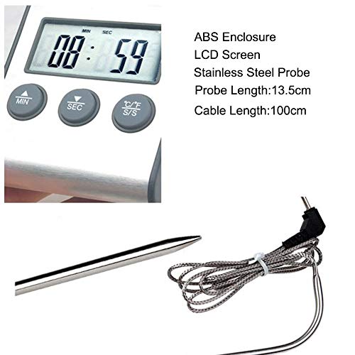 Facile da usare: basta inserire la sonda, scegliere le impostazioni e attendere l'attivazione della sveglia. La sonda è in acciaio inossidabile alimentare con un cavo sonda da 1 metro che può essere attraversato da una porta del forno o del fumatore.