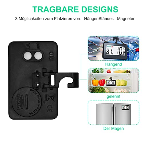 Termometro Frigorifero Digitale,Digitale Termometro Impermeabile, Digitale Termometro Igrometro Perfetto per Frigorifero,Interni, Esterni, Ristoranti, Bar (Nero) (Nero)