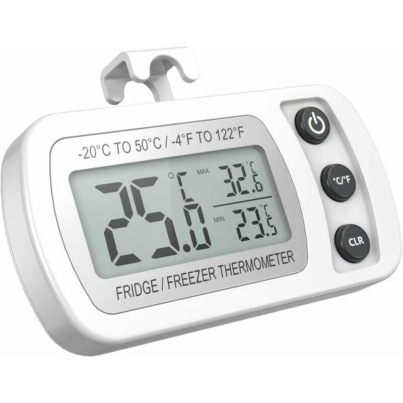 Descrizione [Display LCD grande e funzione impermeabile] -Puoi leggere i risultati della misurazione a colpo d'occhio con l'ampio display LCD di facile lettura. È un buon aiuto per le persone che non hanno la vista migliore. La struttura impermeabile IPX3 può resistere all'umidità del frigorifero o del congelatore, assicurati che funzioni in modo sicuro e coerente. [Registra la temperatura più bassa e più alta] -Fornisci letture storiche della temperatura. Con questa funzione, puoi monitorare facilmente le variazioni di temperatura nel frigorifero e proteggere la sicurezza degli alimenti in due modi. [Funzionamento semplice e intelligente] - Sono necessari solo 3 pulsanti per azionare facilmente il termometro. Basta premere il pulsante di accensione/spegnimento per accendere/spegnere il termometro. Premere il pulsante °C/°F per selezionare Celsius/Fahrenheit. Premere il tasto CLR per eliminare i record massimi/minimi. Riavvia il termometro e il record massimo/minimo verrà