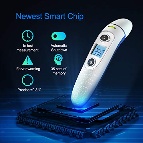 Termometro Fronte e Orecchio, Termometro Precisione Digitale Infrarossi per Neonati, Bambini, Adulti e Oggetti, Allarme Febbre, 1 Secondo Tempo di Misura, Approvato CE/RoHS/FDA