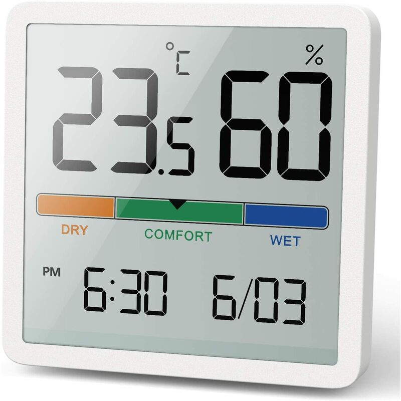 Schermo LCD da 3,34 pollici, la lettura è più chiara - Il termometro igrometro per interni con LCD da 3,34 pollici Il display ha una cornice pulita e sottile che è facile da leggere da ogni angolazione e distanza. [spia luminosa zona comfort] Il simbolo indica condizioni asciutte, confortevoli e umide in base all'umidità e alla temperatura dell'aria interna. [Super portatile e 3 metodi di installazione] Sono disponibili 3 opzioni di installazione per il termometro digitale e l'igrometro per interni, che possono essere utilizzati per l'installazione su scrivania, parete e magnete . Appendere in modo flessibile, appeso al muro o installato nel suo insieme, solo all'interno, ma in luoghi ridondanti, scantinati o garage [Risposta rapida e alta precisione] Velocità di risposta rapida, aggiornata ogni 10 secondi, lettura accurata, ampio intervallo di misurazione, errore di temperatura: -9,9 ° C-60 ° C (14,2 ° F-140), precisione della temperatura: ± 1 ° C. Misura dell'umidità: 10%