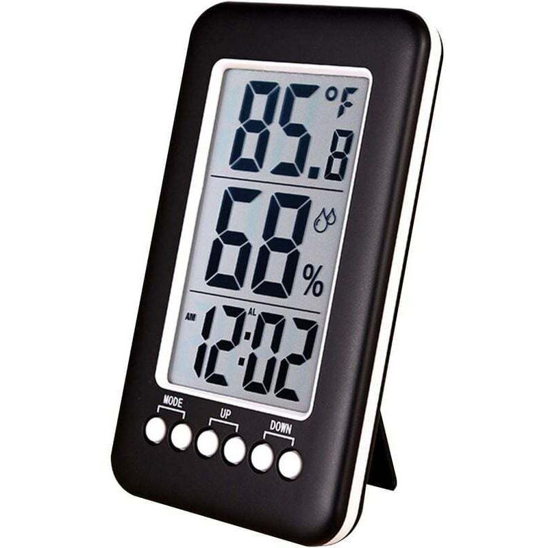 Descrizione del prodotto Caratteristica: Design semplice: c'è una piccola staffa sul retro per un facile posizionamento e trasporto. < p>Funzione tempo: Inoltre oltre alla visualizzazione dell'ora di base, questo modello ha anche una sveglia 1. Temperatura di rilevamento: 0~50℃ (32~122℉) 2. Umidità di rilevamento: 20%-95% 3. Precisione dell'umidità: +/- 5% 4. Precisione della temperatura: +/-1℃ 5. Unità di temperatura: ℃/℉ 6. Materiale: ABS 7. Dimensioni L*P*A (cm): 150*86*22 (MM) 8. Batteria: 2xAAA 1,5 V (non inclusa) Commento: A causa della misurazione manuale, si prega di consentire un errore di 0-1 cm. Prima di fare offerte, assicurati che non ti dispiaccia. A causa delle differenze tra i diversi monitor, l'immagine potrebbe non riflettere il colore effettivo dell'articolo. Grazie! Il pacchetto include: 1 x Igrometro termometro LCD digitale