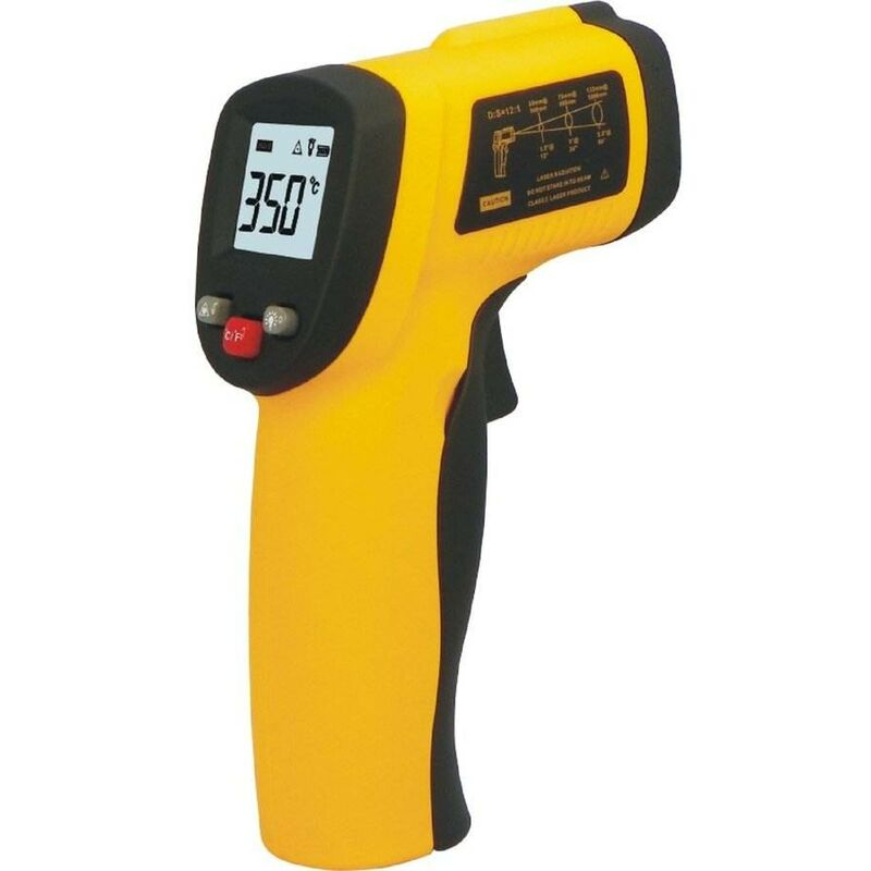 【Termometro industriale】 I termometri a infrarossi possono essere utilizzati per la misurazione della temperatura quotidiana e industriale, come tubi dell'acqua calda, stufe di superfici, lavelli, riscaldatori, condizionatori d'aria, alimenti, ecc. (Nota: la temperatura misurata per esseri umani o animali non sarà corretta.) Se è necessario misurare la temperatura corporea, non acquistare questo termometro. Risposta tempo: 500 ms Lunghezza d'onda di risposta: 8 - 14um ⚠️ 【Termometro industriale】 Questo termometro è un termometro industriale. Campo di misura: -50° C - 380° C, commutabile in ° C e ° F, il valore di emissione di 0,1-1 th. 【Not For Humans】 ⚠️ 【Termometro industriale】 Questo termometro è un termometro industriale. Distanza del rapporto dei punti: 12:1, garantisce risultati accurati anche a basse temperature. distanze maggiori. 【Not For Humans】 ⚠️ 【Termometro industriale】 Questo termometro è un termometro industriale. Precisione: ± 1,5% o ± 1,5° C【Non per esseri umani】