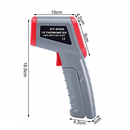 Termometro a Infrarossi Laser, Temperatura Professionale Termometro Senza Contatto, Digital LCD, -50 ° C-500 ° C per Cucina Dolci Forno Ambiente Interno Industria e Scienza (Batteria Inclusa)