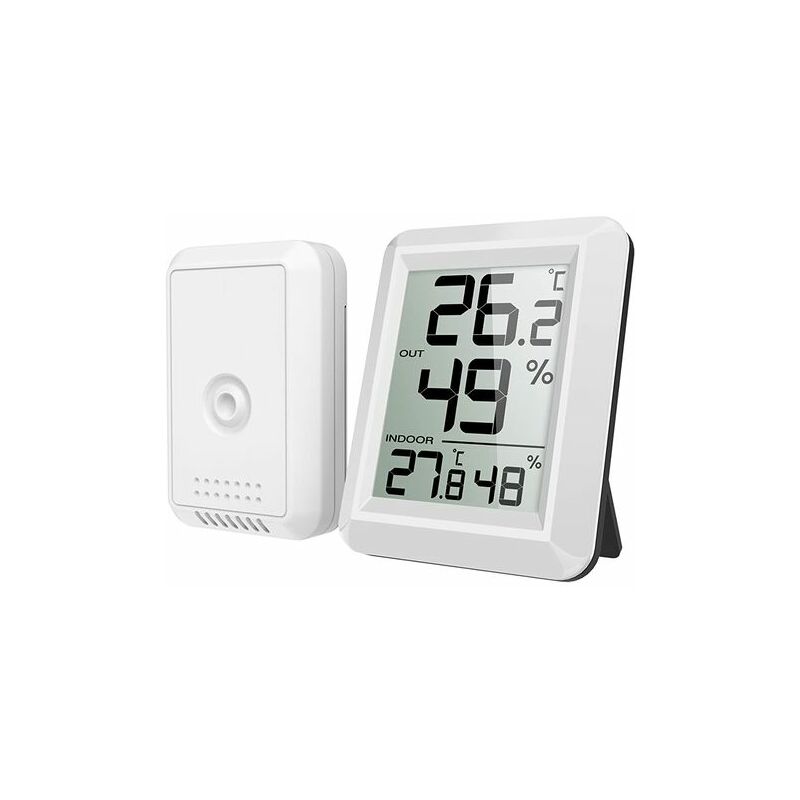 L'igrometro a lungo raggio di trasmissione è collegato a un trasmettitore radio che offre una forte penetrazione del segnale wireless (frequenza 433 MHz). Il termometro ha un ampio raggio di trasmissione (30-100 m/98-328 piedi) all'aperto, il segnale può essere ricevuto rapidamente e il tempo nell'area di trasmissione. < p>Multifunzione per interni e termometro da esterno, per una vita sana, misura i valori di temperatura e umidità all'interno e all'esterno. Utilizzato principalmente per misurare la temperatura e l'umidità in case, uffici, officine, ecc. Lettura accurata e ampio display LCD Ampio display LCD per una visualizzazione facile e chiara. Temperatura interna (0-60°C/32-140°F)/temperatura esterna (-40°C-60°C/-40°F-140°F), umidità (10%-99%) e precisione possono raggiungere 1°C/5% Aggiorna automaticamente i dati ogni 60 secondi (circa 30 minuti per stabilizzare il sensore). Facile da usareÈ facile cambiare con il pulsante in alto le unità di temperatura in Celsius o Fahrenheit.