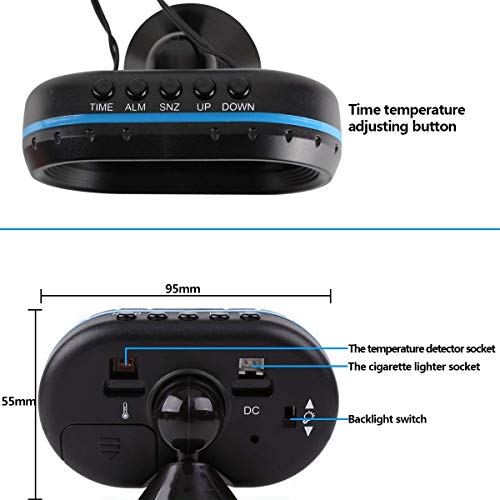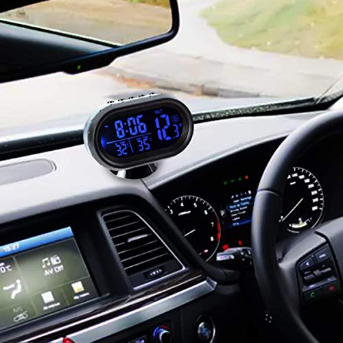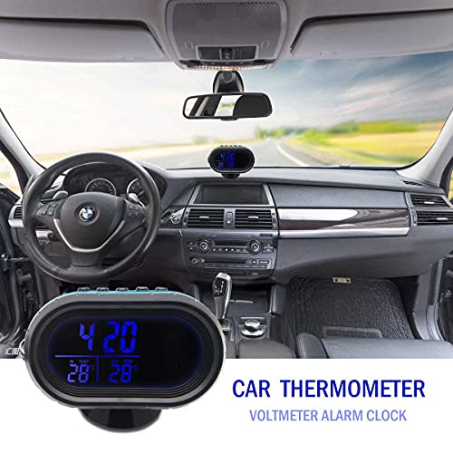 Maso Termometro da auto LCD, multifunzionale, 12-24 V, LCD, misuratore di temperatura, voltmetro, orologio elettronico, allarme, monitor