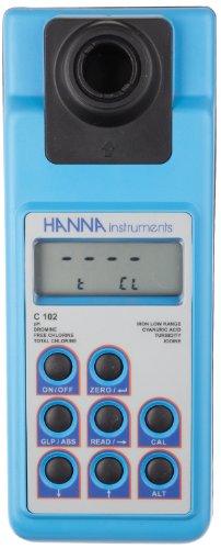 Termometro multiparametri per torbidimento, bromo, cloro, acido cianuro, ferro, iod e pH, con valvole di misurazione e batterie incluse