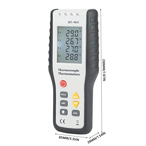 Termometro Termocoppia, Akozon Termometro Digitale Termocoppia HT-9815 a 4 Canali con Termocoppia Sensore K Tipo LCD a Lettura Immediata (- 200 ° C ~ 1372 ° C)