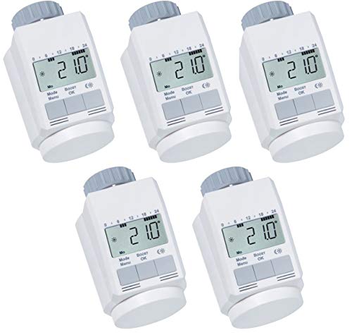 EQ-3 - Set di 5 termostati da radiatore "L" con funzione Boost +++, nuovo modello silenzioso