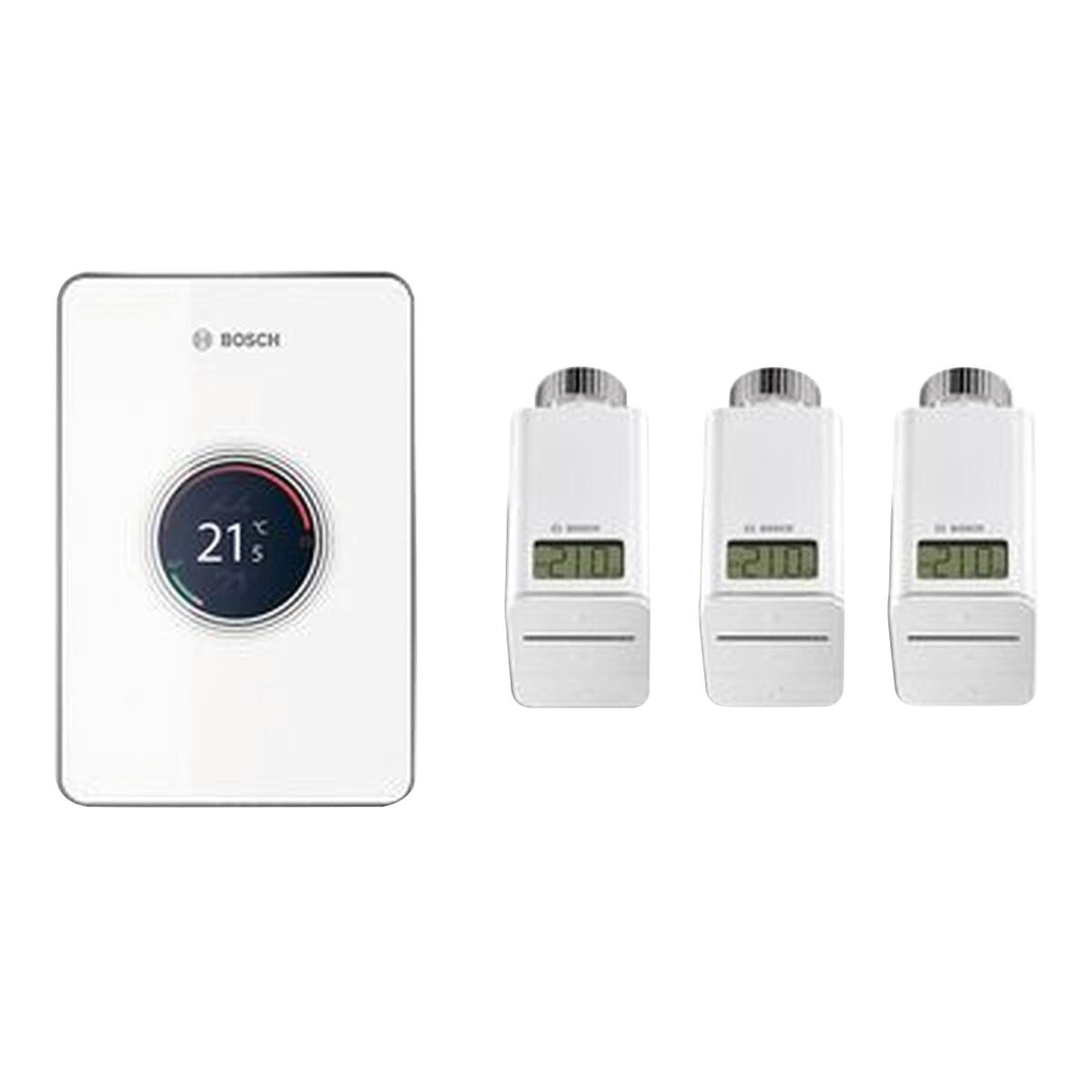 Composto da un termostato wi-fi + 3 teste termostatiche intelligenti. Indicato per la chiusura e apertura delle valvole termostatiche dei termosifoni con gestione da remoto