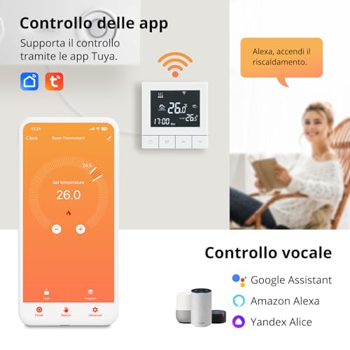 Termostato wifi per caldaia Termostato con alexa controllo vocale.Termostato Tuya Programmabile settimanalmente.Termostato digitale domestico intelligente incorporato TGT79 3A contatto pulito