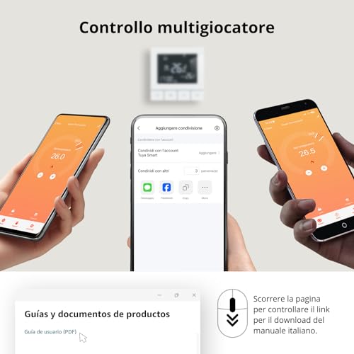 【Condivsione dispositivo】È possibile condividere la gestione del dispositivo con altre persone, ad esempio i familiari, attraverso l'app. Ciò consente di soddisfare le diverse esigenze di ciascun membro della famiglia in termini di temperatura ambiente.
