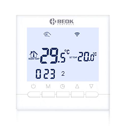 Beok Termostato Wifi Per Caldaia A Gas, Termostato Ambiente Intelligente Programmabile Con Schermo LCD, Telecomando Tramite Smartphone Compatibile Con Google, Alexa, AC220V 3A Bianco BOT-313WIFI