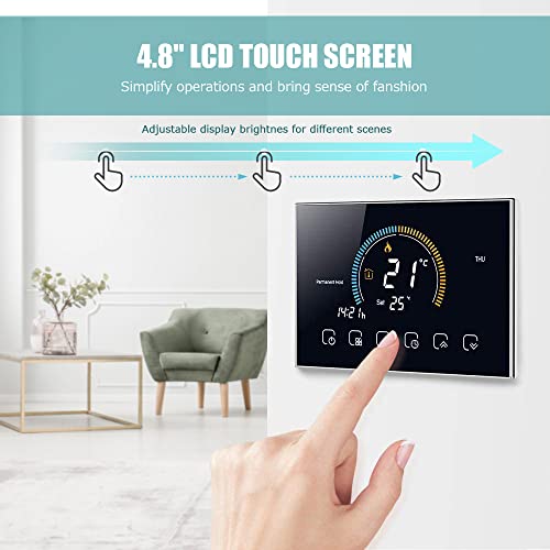 【Design umanizzato e alla moda】 Lusso in nero, solo 15 mm di spessore visibile sopra la parete, il touch screen LCD da 4,8 "non solo semplifica le operazioni, ma porta anche un senso di moda, rendendo la tua casa più mordente. Il display sullo schermo può essere visto chiaramente a qualsiasi altezza, angolazione e anche di notte.