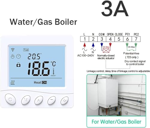 Due Modalià: Il termostato wifi per il riscaldamento WiFi supporta la programma o manuale. È possibile utilizzare il controllo manuale o programma, facilmente regolare la temperatura della vostra casa.