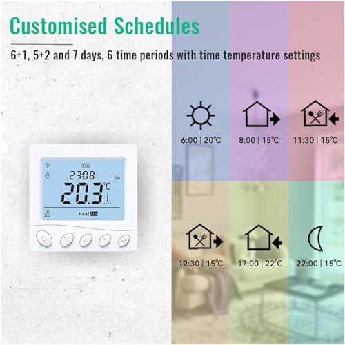 Termostato che perfetta per la vita tua.Settimanalmente e 5+1+1 6 periodi di tempo programmabili,Risparma fino a 25% energia,controllo a remoto,app e voice