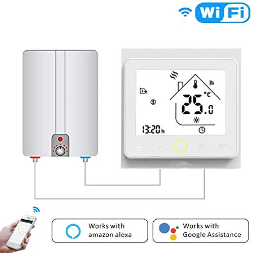 Termostato WiFi per Caldaia a gas/Acqua, pulsante Termostato intelligente Schermo LCD (TN Schermo) tocco Retroilluminato programmabile con Alexa Home page di Google E Telefono APP-Bianco (White)