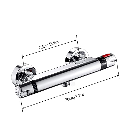 N / B Termostato per Doccia, con impostazione della Temperatura e impostazione del Flusso, termostato per Miscelatore Doccia Cromato Moderno, antiscottatura, con Pulsante di Sicurezza