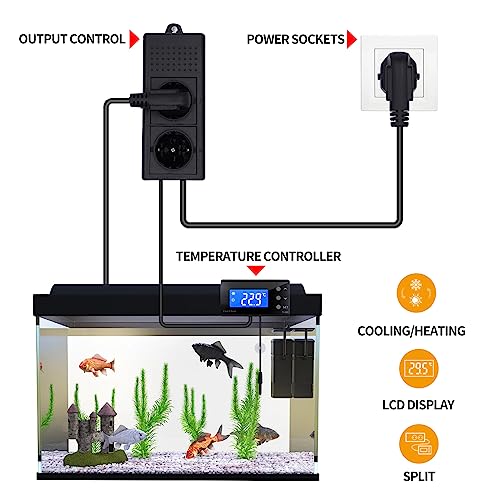 AMPIA GAMMA DI UTILIZZI: il termoregolatore può essere utilizzato per acquari, vasche per pesci, box di allevamento, contenitori di vetro, pollame, terrari, incubatrici, serre e altri sistemi di controllo della temperatura.