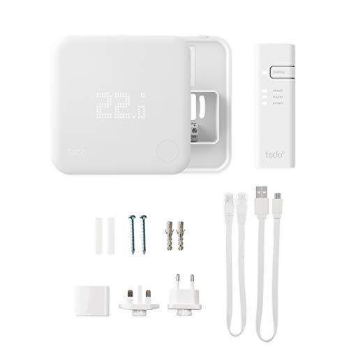 Tado Kit Base Termostato Intelligente Cablato V3+ - Gestione smart del riscaldamento, Installazione fai-da-te, compatibile anche con impianto a pavimento idronico, con Alexa, Siri e Google Assistant