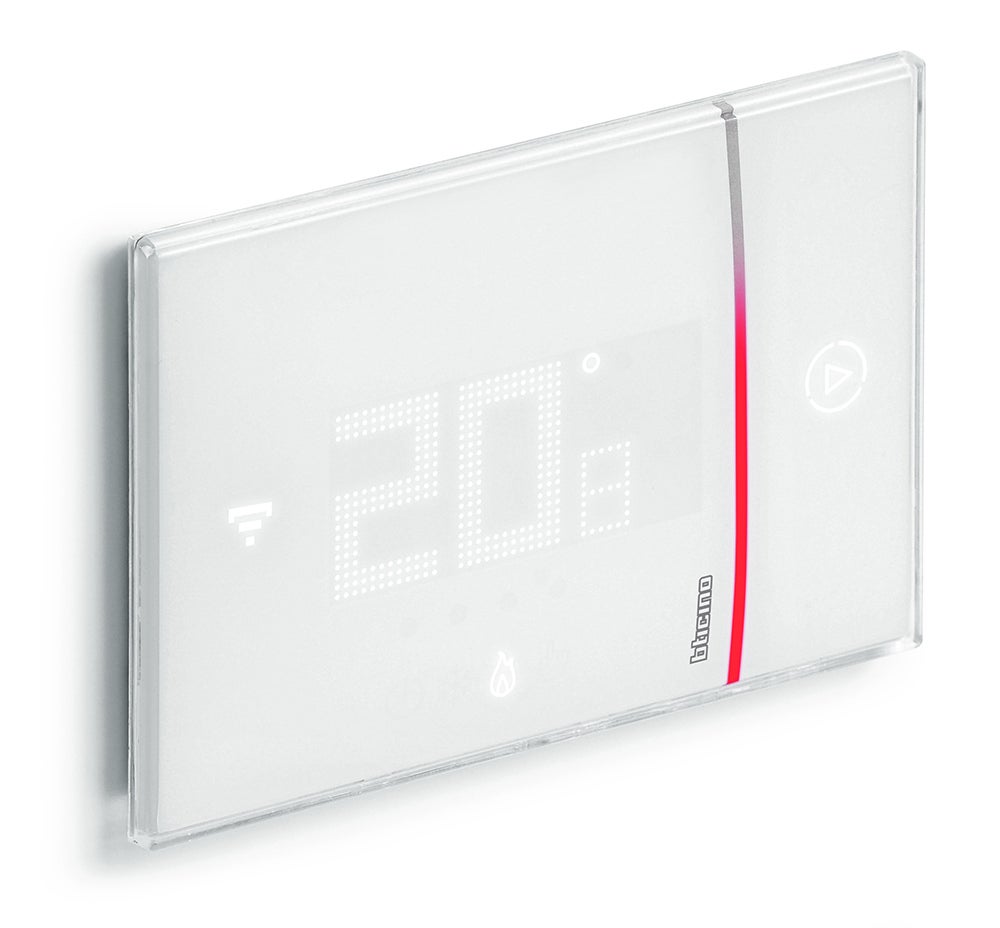 Termostato connesso Smarther2 with Netatmo. In abbinamento con la APP Home + Control permette di regolare e monitorare la temperatura all'interno degli ambienti in modo preciso e puntuale;