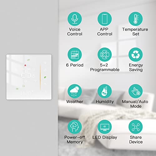 MOES Termostato intelligente Termostato WiFi programmabile per riscaldamento elettrico per la casa, programmabile a 2,4 GHz Funziona con Alexa e Google Home 16A per Riscaldamento a Pavimento