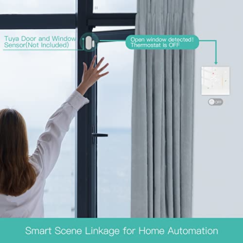 【Termostato a risparmio energetico】 Supporta impostazioni automatiche o manuali, con 5+1+1 impostazioni programmabili a settimana, impostazioni di temperatura per 6 periodi al giorno, che ti aiutano a risparmiare energia e costi. Sensori WiFi per porte e finestre configurabili per rilevare un rapido calo della temperatura ambiente (ad es. quando si apre una finestra) e interrompere automaticamente il riscaldamento per evitare sprechi di energia.