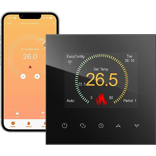 Beok Termostato Intelligente WIFI Termostato Smart per Caldaia Termostato Programmabile Compatibile con Alexa Google Home Tuya Smart&Smart Life APP LED Digitale Touchscreen, TCB38WIFI-WPB